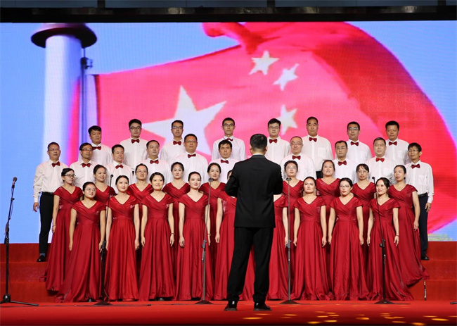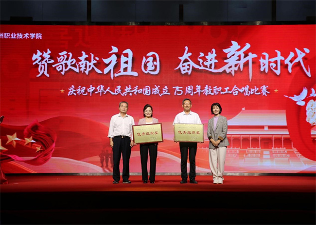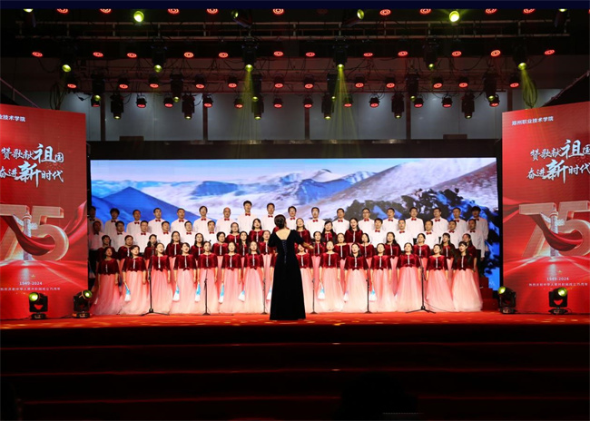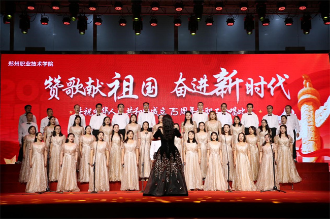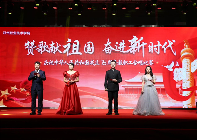 中新河南網(wǎng)10月1日電 贊歌獻(xiàn)祖國(guó)、奮進(jìn)新時(shí)代。9月29日晚,鄭州職業(yè)技術(shù)學(xué)院在大學(xué)生活動(dòng)中心舉辦慶祝中華人民共和國(guó)成立75周年教職工合唱比賽。學(xué)校黨委書記呂村、校長(zhǎng)潘維成、黨委副書記肖世才、副校長(zhǎng)張建偉、工會(huì)主席王桂麗、副校長(zhǎng)王少華、紀(jì)委書記楊挺出席活動(dòng),與全校教職工歡聚一堂,共同謳歌新中國(guó)成立75年來(lái)的輝煌歷程,共同祝福偉大祖國(guó)繁榮昌盛。