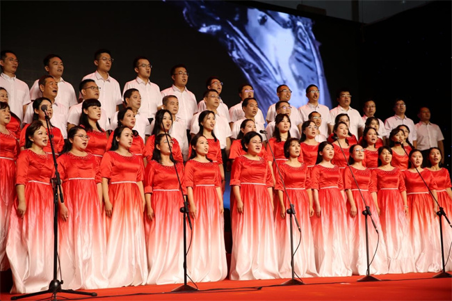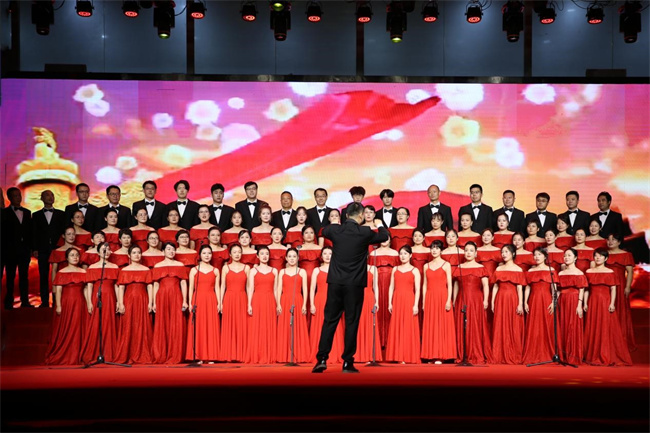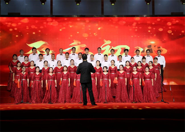 當晚,大學生活動中心燈光璀璨、氣氛喜慶。比賽在機關(guān)合唱二隊與繼續(xù)教育學院合唱隊帶來的歌曲《東方紅》中拉開帷幕。比賽中,全校11支參賽隊以昂揚的精神、飽滿的熱情、恢弘的氣勢、整齊的隊列先后登場!稕]有共產(chǎn)黨就沒有新中國》《我和我的祖國》《今天是你的生日》《祖國不會忘記》《我們走在大路上》《團結(jié)就是力量》《愛我中華》《保衛(wèi)黃河》等一首首歌曲被飽含深情地演繹,時而昂揚激越、時而低沉傾訴、時而鏗鏘有力,唱出了鄭職院教職工對祖國的無限熱愛,唱出了一心向黨砥礪前行的熾熱情懷,抒發(fā)了鄭職院教職工為黨育人、為國育才的堅定決心和向著國家一流高水平高職院校闊步前行的堅定信心。