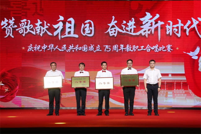 75年櫛風沐雨,75年高歌奮進。整場比賽氣氛熱烈,高潮迭起,現(xiàn)場時時響起熱烈的掌聲。經(jīng)過激烈角逐,機關(guān)合唱一隊、文化創(chuàng)意學院和建筑與環(huán)境工程學院合唱隊榮獲一等獎;自動化與物聯(lián)網(wǎng)學院和信息工程與大數(shù)據(jù)學院合唱隊、軌道交通工程學院和生命健康學院合唱隊、新能源汽車學院合唱隊、財經(jīng)與金融管理學院和新材料工程學院合唱隊榮獲二等獎;機關(guān)合唱二隊和繼續(xù)教育學院合唱隊、馬克思主義學院合唱隊、智能制造學院合唱隊、電子商務學院合唱隊、體育學院合唱隊榮獲三等獎。黨委宣傳部、校工會榮獲優(yōu)秀組織獎,校團委、文化創(chuàng)意學院榮獲突出貢獻獎。