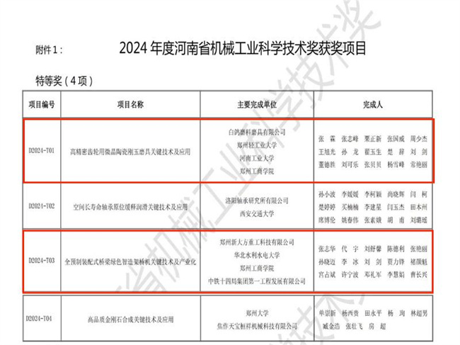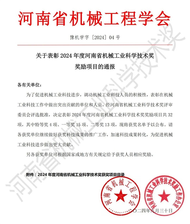 中新河南網(wǎng)10月11日電(劉劍) 近日,2024年河南省機(jī)械工業(yè)科學(xué)技術(shù)獎(jiǎng)評(píng)選結(jié)果揭曉,全省共4個(gè)項(xiàng)目成果獲批特等獎(jiǎng),鄭州工商學(xué)院聯(lián)合校企合作企業(yè)及兄弟院校聯(lián)合申報(bào)的2個(gè)項(xiàng)目均獲特等獎(jiǎng),填補(bǔ)了學(xué)校在該領(lǐng)域的空白,實(shí)現(xiàn)了歷史性突破。