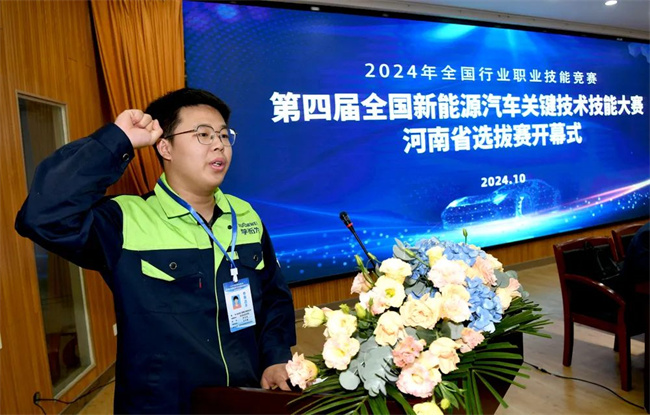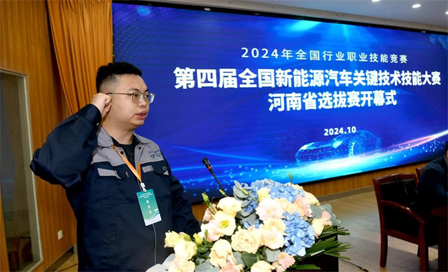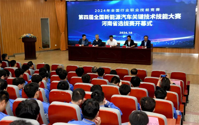 中新河南網(wǎng)10月13日電(王飛龍) 10月11日—12日,第四屆全國新能源汽車關(guān)鍵技術(shù)技能大賽河南省選拔賽在新鄉(xiāng)職業(yè)技術(shù)學(xué)院舉辦。10月11日上午開幕式在實(shí)驗(yàn)樓一樓階梯教室舉行。河南省人力資源和社會(huì)保障廳職業(yè)能力建設(shè)處處長姚磊,新鄉(xiāng)市人力資源和社會(huì)保障局黨組書記、局長劉建學(xué),河南省職業(yè)技能等級(jí)評(píng)價(jià)指導(dǎo)中心副主任支聯(lián)峰出席開幕式,開幕式由省人力資源社會(huì)保障廳職業(yè)能力建設(shè)處副處長朱匯海主持。