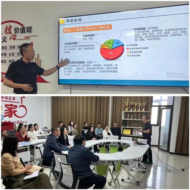 “五老”代表開展健康教育講座。10月10日,原校黨委副書記、“五老”代表王傳中以《代謝綜合征——熟悉又陌生的疾病》為主題為機關(guān)黨總支、臨床醫(yī)學(xué)院、護理學(xué)院、康養(yǎng)學(xué)院等60余名教職工代表開展健康教育知識講座。王傳中以扎實的專業(yè)學(xué)識、豐富的數(shù)據(jù)支撐、生動的知識講解、標準的動作展示、活潑的現(xiàn)場互動,從什么是代謝綜合征、代謝綜合征的指征特點、主要危害、如何應(yīng)對4個方面進行講解,提出通過管理體重、健康飲食、適量運動、保障睡眠、戒煙限酒、合理用藥、管理情緒等方式應(yīng)對風險,把健康鑰匙牢牢抓在自己手中。勉勵大家,要學(xué)以致用,從自身做起,踐行健康生活方式,在工作中教育學(xué)生、在生活中教育子女,做自己健康的第一責任人,在關(guān)心下一代工作中做出自身的健康擔當。