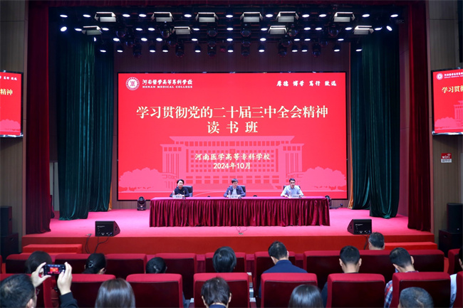 花明在開(kāi)班講話中強(qiáng)調(diào),要提高政治站位,深刻領(lǐng)會(huì)全會(huì)精神。充分把握全會(huì)的重大政治意義、理論意義、實(shí)踐意義,以全會(huì)精神統(tǒng)一思想、統(tǒng)一認(rèn)識(shí)、統(tǒng)一行動(dòng),把學(xué)習(xí)貫徹黨的二十屆三中全會(huì)精神與與鞏固拓展主題教育成果和深化黨紀(jì)學(xué)習(xí)教育貫通起來(lái)。要加強(qiáng)學(xué)習(xí)研究,深化落實(shí)全會(huì)部署。結(jié)合全會(huì)對(duì)教育綜合改革的部署和要求,聯(lián)系學(xué)校實(shí)際,在加強(qiáng)黨建引領(lǐng)、落實(shí)立德樹(shù)人根本任務(wù)、打造融合發(fā)展的職業(yè)教育等方面,加強(qiáng)學(xué)習(xí)研究,深化理論闡釋。要增強(qiáng)履職本領(lǐng),深入謀劃學(xué)校發(fā)展。要理論聯(lián)系實(shí)際,立足本職工作,與“新雙高”建設(shè)、學(xué)校“十四五”發(fā)展規(guī)劃、巡察整改等中心工作結(jié)合起來(lái),持續(xù)做好優(yōu)化專(zhuān)業(yè)設(shè)置、改革培養(yǎng)模式、深化產(chǎn)教融合、加強(qiáng)交流合作等工作,把學(xué)習(xí)的成果轉(zhuǎn)化為具體的工作思路、工作舉措和工作成效,努力打造醫(yī)學(xué)高等職業(yè)教育特色和品牌。