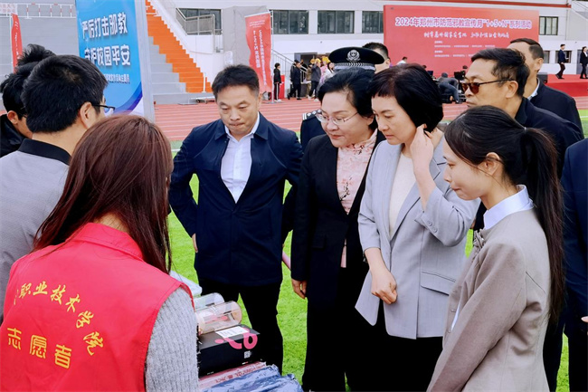 與會領(lǐng)導(dǎo)參觀鄭州職業(yè)技術(shù)學(xué)院反邪教協(xié)會設(shè)立的宣傳展位