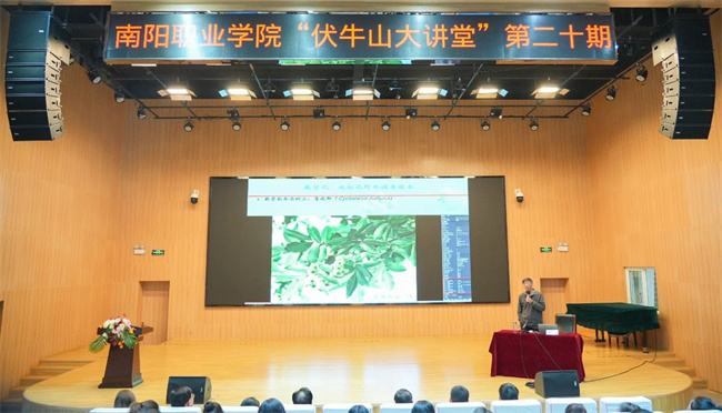 報告開始前,副校長梁秀山為劉宗才頒發(fā)南陽職業(yè)學(xué)院“客座教授”聘書。劉宗才教授贈與了仲景中醫(yī)藥與健康學(xué)院《珍稀植物圖鑒》《伏牛山國家級自然保護區(qū)植物圖志》《丹陽湖國家濕地公園植物圖鑒》等個人主編的系列圖書,朱麗芳代表仲景中醫(yī)藥與健康學(xué)院受贈。