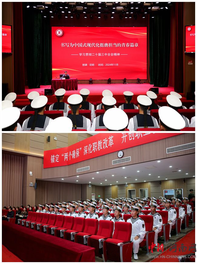 中新河南網(wǎng)11月12日電(文/李東明 圖/蔡雨) 11月12日,河南醫(yī)學高等?茖W校黨委書記花明以《書寫為中國式現(xiàn)代化 挺膺擔當?shù)那啻浩隆窞轭},在公共藝術(shù)中心為200名學生代表講授一堂主題鮮明、內(nèi)容豐富的專題思政課。校黨委副書記、工會主席李鵬濤、黨委宣傳部、馬克思主義學院負責人及輔導員代表出席。