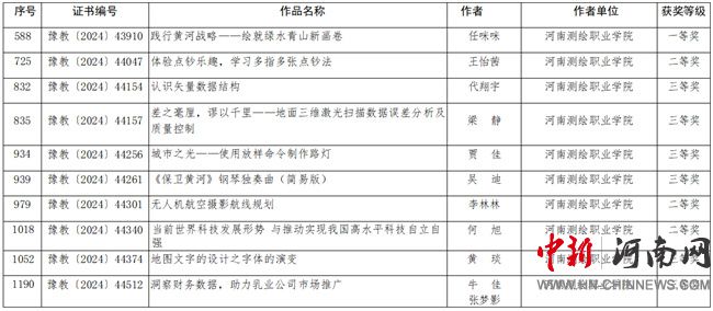 中新河南網(wǎng)11月18日電(王雪瑩) 近日,根據(jù)《河南省教育廳關(guān)于公布河南省第二十八屆教育教學(xué)信息化交流活動評選結(jié)果的通知》(教資!2024〕343號)文件,河南測繪職業(yè)學(xué)院報名參賽的《踐行黃河戰(zhàn)略——繪就綠水青山新畫卷》(微課)、《體驗點鈔樂趣,學(xué)習(xí)多指多張點鈔法》(微課)、《差之毫厘,謬以千里——地面三維激光掃描數(shù)據(jù)誤差分析及質(zhì)量控制》(微課)等10項作品獲獎。