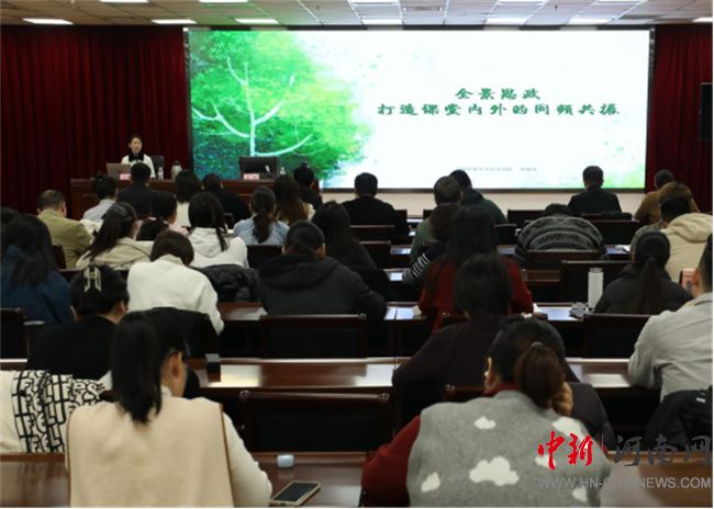 全景思政——打造課堂內(nèi)外同頻共振。河南農(nóng)業(yè)大學文法學院黨委副書記、全國高校輔導員年度人物提名獎獲得者朱瑞萍老師立足自身學生工作實際,結(jié)合輔導員工作成長發(fā)展,融入省賽國賽參與經(jīng)驗,從“全景視角——思政工作的時代訴求”“全面發(fā)展——青年學生的成長需求”“三全育人——高校思政的實踐探索”三個方面進行了全面闡釋,并寄語學校輔導員努力做學生成長成材的人生導師和健康生活的知心朋友,鼓勵輔導員從理論學習到工作實踐,讓“知心朋友”多些引領力;從日常管理到價值引領,讓“傳道師者”更具吸引力;從傾聽陪伴到成長筑基,讓“信仰之花”延續(xù)生命力。