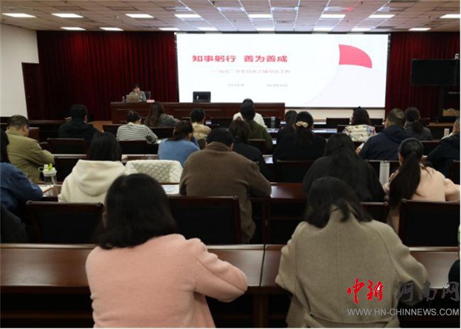 凝聚共識——做有溫度的輔導員,共筑育人新陣地。學生工作部部長賈艷以《知事躬行,善為善成——“一站式”學生社區(qū)之輔導員工作》為題,介紹了“一站式”學生社區(qū)建設背景、主要任務,結(jié)合學校“一站式”學生社區(qū)建設情況從輔導員職責、具體工作、有關要求等方面詳細闡述,希望全體學工人員在學校“一站式”學生社區(qū)建設工作中做到認識到位、責任到位、工作到位,履行好值班值守、開展好學生活動、解決好學生急難愁盼問題、處理好可能出現(xiàn)的突發(fā)事件。