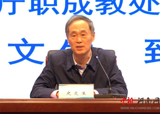 河南省教育廳職業(yè)教育與成人教育處一級調(diào)研員史文生作講話