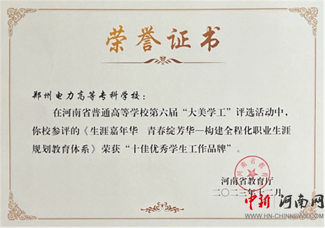 星光不問趕路人,時光不負實干者。近年來,鄭州電力高等?茖W校把握類型定位,深耕電力職教,強化思想引領,堅持五育并舉,優(yōu)化管理服務,推動內(nèi)涵建設,助力學生高質(zhì)量成長成才,學生工作成績斐然。先后獲評“大美學工”十佳優(yōu)秀學生工作先進單位、十佳優(yōu)秀學生工作品牌3項、學生工作優(yōu)秀成果獎3項、首屆全國大學生職業(yè)生涯規(guī)劃大賽優(yōu)秀組織獎等榮譽,學生在創(chuàng)新創(chuàng)業(yè)、生涯規(guī)劃等大賽中屢創(chuàng)佳績,畢業(yè)生初次就業(yè)去向落實率連續(xù)四年位居全省前列。