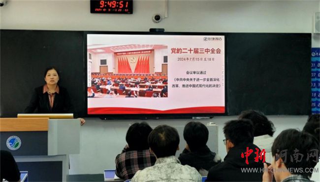 9月5日,10月17日、21日,校黨委書(shū)記李廣慧分別為學(xué)校黨員干部、教師代表和環(huán)境工程系、機(jī)電工程系學(xué)生宣講黨的二十屆三中全會(huì)精神。