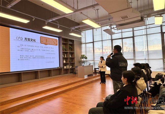 講座內(nèi)容豐富詳實,從開封的飲食文化、體育文化、書法文化,到戲曲文化、技藝文化、方言文化乃至民俗文化,面面俱到,如同一幅徐徐展開的歷史文化長卷。同學(xué)們沉浸其中,全身心投入,不時與董老師積極互動。當(dāng)談及開封方言文化時,開封籍學(xué)生踴躍登臺,以地道的開封方言展示本土語言的獨特韻味,贏得了全場師生的熱烈掌聲,將講座氣氛推向高潮。此次講座不僅有效拓寬了學(xué)生們的文化視野,提升了他們的審美素養(yǎng),更點燃了在開封求學(xué)的大學(xué)生們對這座城市文化的強烈認(rèn)同感、歸屬感與自豪感。它宛如一顆文化的火種,為開封文化在校園內(nèi)外的傳承、普及與推廣注入了新的活力,在弘揚與傳播開封文化的道路上留下了堅實而深刻的腳印。