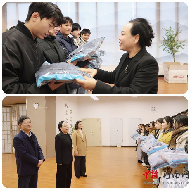 中新河南網(wǎng)12月5日電 12月3日下午,開封文化藝術職業(yè)學院2024年“冬季送溫暖”家庭經(jīng)濟困難學生專項資助活動,在文心書院多功能大廳舉行。開封文化藝術職業(yè)學院校長何新、黨委副書記王森、學生處處長陳華到活動現(xiàn)場為同學們發(fā)放棉衣,送去溫暖和慰問,也轉達學校對同學們的關懷和希望。何新還親切叮囑同學們,冬季來臨,一定要注意防寒保暖。大家身處學校這個溫暖的大家庭,一定要互幫互助互愛互學,共同成長,在同學中積極傳播正能量。有困難找學校,學校會全力為大家做好服務,做同學們最堅實的支持和依靠,助力大家勇敢追逐夢想,自信邁向未來。
