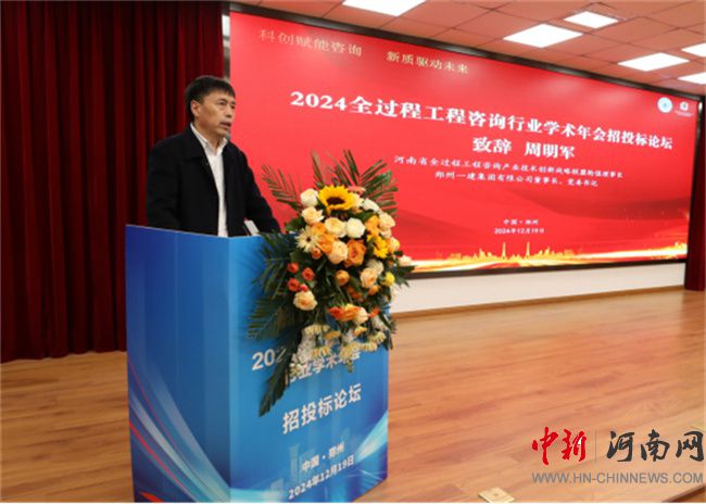 河南省全過(guò)程工程咨詢產(chǎn)業(yè)技術(shù)創(chuàng)新戰(zhàn)略聯(lián)盟輪值理事長(zhǎng)、鄭州一建集團(tuán)有限公司董事長(zhǎng)、黨委書記周明軍致辭。他指出,面對(duì)目前招投標(biāo)行業(yè)存在的問(wèn)題與挑戰(zhàn),本次學(xué)術(shù)年會(huì)召開(kāi)的意義重要而深遠(yuǎn)。相信通過(guò)這些精彩紛呈的學(xué)術(shù)報(bào)告、互動(dòng)討論,我們將從中獲得新的啟示和靈感,為推動(dòng)全過(guò)程工程咨詢行業(yè)的高質(zhì)量發(fā)展提供強(qiáng)大的智力支持和技術(shù)保障。