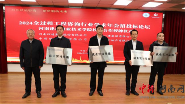 河南建筑職業(yè)技術(shù)學(xué)院副校長(zhǎng)喻幕海向鄭州一建集團(tuán)有限公司、河南四建集團(tuán)股份有限公司、中新創(chuàng)達(dá)咨詢有限公司、河南雙匯地產(chǎn)有限公司等4家企業(yè)授牌“就業(yè)實(shí)習(xí)基地”。學(xué)校將與各家企業(yè)在人才培養(yǎng)、實(shí)習(xí)實(shí)訓(xùn)等方面展開(kāi)深入合作。