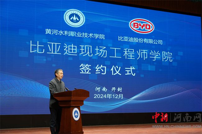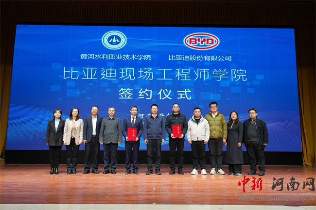 黃河水利職業(yè)技術(shù)學院與比亞迪股份有限公司共建的“比亞迪現(xiàn)場工程師學院”簽約儀式現(xiàn)場