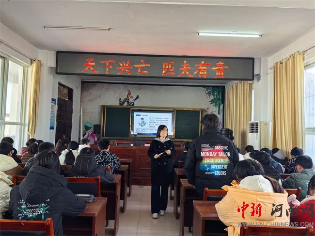 圖書捐贈(zèng)儀式結(jié)束后,該校馬克思主義學(xué)院沈哲老師為泌陽縣高邑鎮(zhèn)初級(jí)中學(xué)八年級(jí)一班的學(xué)生帶來了一堂主題為《天下興亡 匹夫有責(zé)》的思政課。課程設(shè)計(jì)精妙,兼具思想深度、知識(shí)廣度與教學(xué)親和力,沈哲老師通過生動(dòng)的講述,引領(lǐng)學(xué)生們暢游于紅色故事的浩瀚海洋,深刻領(lǐng)略閱讀與知識(shí)傳承的獨(dú)特魅力。課堂上,學(xué)生們熱情高漲,積極參與互動(dòng)討論,現(xiàn)場(chǎng)氣氛熱烈而有序,充分展現(xiàn)了思政教育的吸引力與感染力。