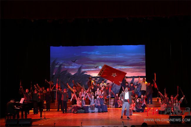 在這場盛大的音樂會上,演員們憑借扎實深厚的功底與滿腔熱忱,生動演繹了《白毛女》《洪湖赤衛(wèi)隊》《長征》《沂蒙山》《黨的女兒》《江姐》等歌劇的精彩片段,用紅色經(jīng)典民族歌劇回溯革命時期的崢嶸歲月,為現(xiàn)場師生展示一幅波瀾壯闊的歷史畫卷,給大家?guī)砹艘粓鲇|及靈魂的信仰與精神的洗禮。演出期間,觀眾們深深沉浸其中。他們?yōu)榘酌目部烂\喟然嘆息,在“洪湖水,浪打浪”那悠揚婉轉(zhuǎn)的旋律里,真切感受到革命者對家鄉(xiāng)熾熱的愛,以及對革命勝利堅定不移的信念。聆聽《長征》,仿佛親眼見證那段波瀾壯闊的英雄史詩;感悟《沂蒙山》,深刻領(lǐng)會軍民水乳交融、生死與共的偉大沂蒙精神;重溫《黨的女兒》,銘記田玉梅堅守信仰、頑強斗爭的英勇革命故事;走進《江姐》,追憶那些在黑暗中執(zhí)著求索、于苦難中奮勇抗爭的先輩們。演出在激昂深情的《紅梅贊》中緩緩落下帷幕,一個個靈動的音符,恰似待放的花苞,在凜冽的寒風中傲然盛放。激昂的歌聲、剛勁的舞步、催人淚下的劇情和極具震撼力的視聽效果,讓現(xiàn)場觀眾領(lǐng)略到了氣勢恢弘、蕩氣回腸的紅色經(jīng)典傳奇故事。
