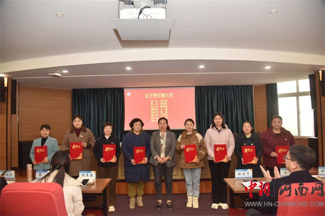 中新河南網(wǎng)12月27日電(王俊嶺) 12月23日下午,河南職業(yè)技術(shù)學(xué)院在行政樓238會議室舉行第十三屆教職工乒乓球比賽閉幕式。校黨委副書記、校長夏新顏,校黨委副書記、工會主席田華出席閉幕,并分別為獲得本屆乒乓球比賽的男女團(tuán)體和男女單打前八名運(yùn)動員頒獎。校分工會負(fù)責(zé)人、全體參賽運(yùn)動員參加閉幕式。