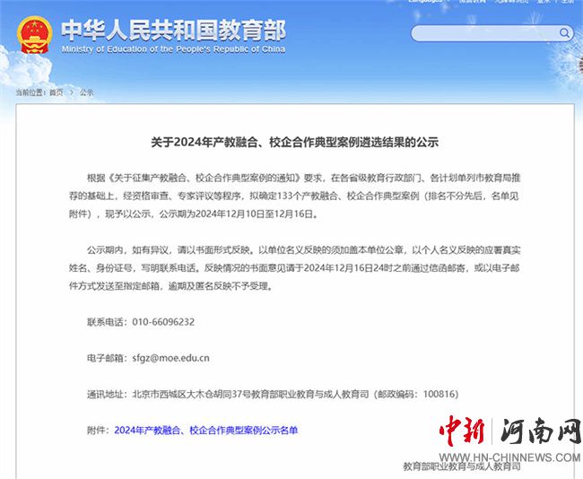 中新河南網12月27日電(張思雨) 近日,教育部職業(yè)教育與成人教育司發(fā)布《關于2024年產教融合、校企合作典型案例遴選結果的公示》,鄭州電力高等?茖W!懂a教融合錨定“雙碳”目標 追“風”逐“綠”鍛造新時代工匠》案例成功入選。