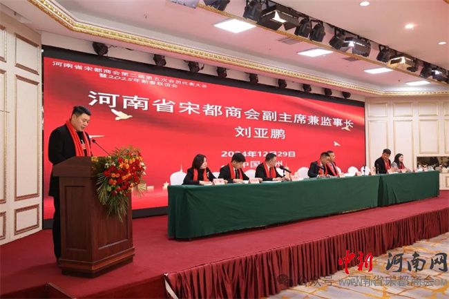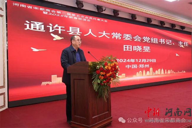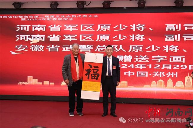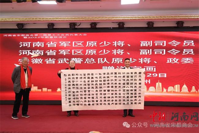 中新河南網(wǎng)12月31日電 2024年12月29日,河南省宋都商會(huì)第二屆第五次會(huì)員代表大會(huì)暨2025年新春聯(lián)誼會(huì)在鄭州盛世民航大酒店隆重舉行。河南省工商聯(lián)副主席馬躍峰,通許縣人大常委會(huì)主任田曉旻;河南省軍區(qū)原少將、副司令員王太順,河南省軍區(qū)原少將、副司令員楊鳳海,安徽省武警總隊(duì)原少將、副司令員馮文成;河南省人民政府資深參事、安陽(yáng)市人民政府原副市長(zhǎng)肖繼業(yè),信陽(yáng)軍區(qū)原大校、副司令員張中廷,原北京軍區(qū)鄭州辦事處大校、主任李克俊,河南省總工會(huì)副主席黃健,河南省供銷(xiāo)社原副主任王清良,河南省直機(jī)關(guān)事務(wù)管理局副局長(zhǎng)毛衛(wèi)豐;河南省發(fā)改委大項(xiàng)辦原主任張行忠、河南省監(jiān)獄管理局原獄政處長(zhǎng)孫家合、鄭州市公安局十八里河分局原政委聶學(xué)鋒、河南省交通職業(yè)技術(shù)學(xué)院原副院長(zhǎng)陳振峰以及社會(huì)各界精英會(huì)員代表等近300人參加會(huì)議。