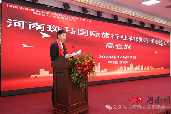 副主席高金旗作為承辦單位在致詞中發(fā)言,非常感謝河南省宋都商會(huì)為我們提供的這個(gè)寶貴的平臺(tái),正是有了商會(huì)的引領(lǐng)和支持,賦能和助力,我們才能夠披荊斬棘、一路前行。河南斑馬國(guó)際旅行社有限公司成立10年來(lái),擁有100余名優(yōu)秀員工,在北京、上海、深圳設(shè)立辦事處。公司以雄厚的實(shí)力和專(zhuān)業(yè)力量與國(guó)內(nèi)外數(shù)千家航空公司、度假酒店、目的地旅游公司建立了良好的合作關(guān)系。相信在宋都商會(huì)的帶領(lǐng)下,我們一定能夠開(kāi)拓更廣闊的市場(chǎng),實(shí)現(xiàn)更高質(zhì)量的發(fā)展,實(shí)現(xiàn)合作共贏的美好愿景。