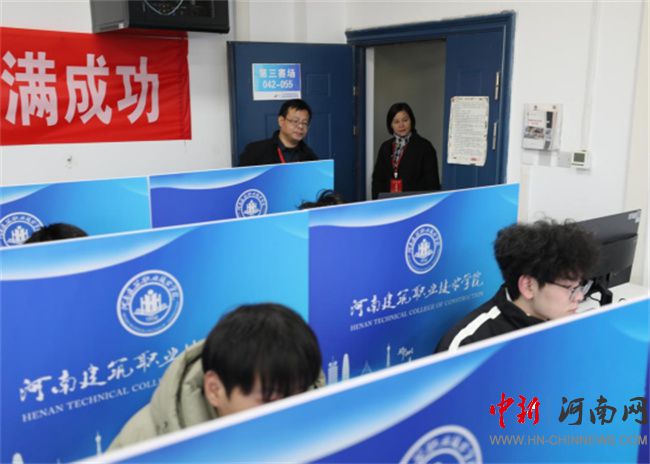 本賽項(xiàng)裁判長(zhǎng)河南應(yīng)用技術(shù)職業(yè)學(xué)院建筑工程學(xué)院院長(zhǎng)李勇、監(jiān)督員漯河職業(yè)技術(shù)學(xué)院教務(wù)處處長(zhǎng)趙冬梅巡查考場(chǎng)