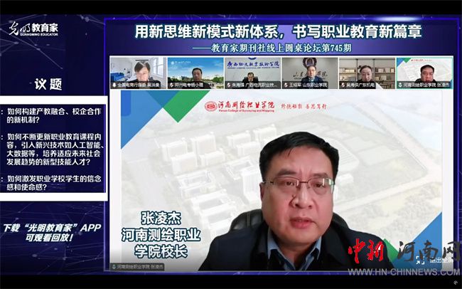 河南測繪職業(yè)學院校長張凌杰參加光明日報《教育家》雜志線上圓桌論壇
