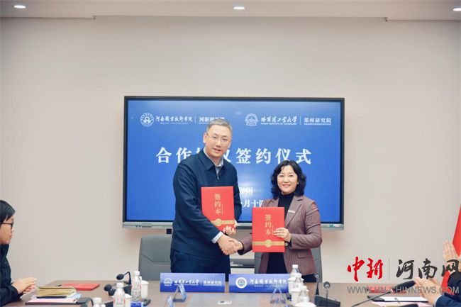 儀式上,夏新顏、劉銘輝分別代表雙方簽署戰(zhàn)略合作協(xié)議,任楓軒、鄂羽佳分別代表學校河職創(chuàng)新港和哈工大鄭州研究院河南哈鄭同心孵化器有限公司簽署入駐協(xié)議。