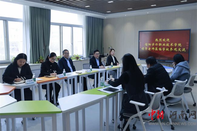 中新河南網(wǎng)3月5日電(唐子夢) 2月27日,信陽涉外職業(yè)技術(shù)學(xué)院副校長潘勇華一行3人到校調(diào)研交流心理健康教育工作,鄭州電力高等?茖W(xué)校黨委委員、副校長黃鵬陪同。