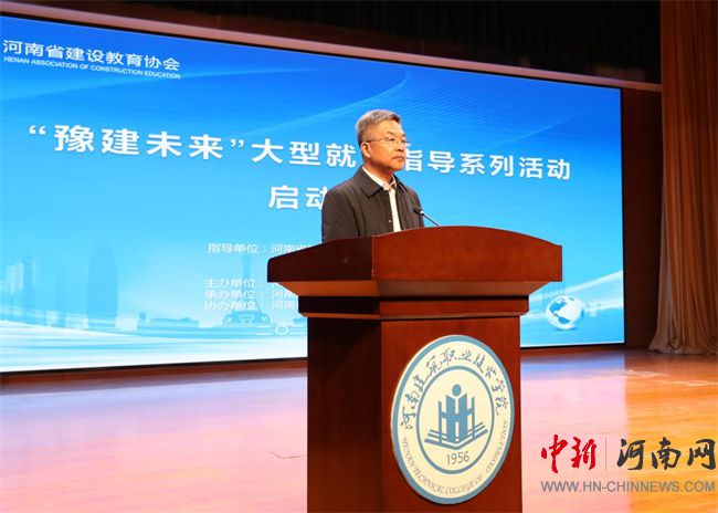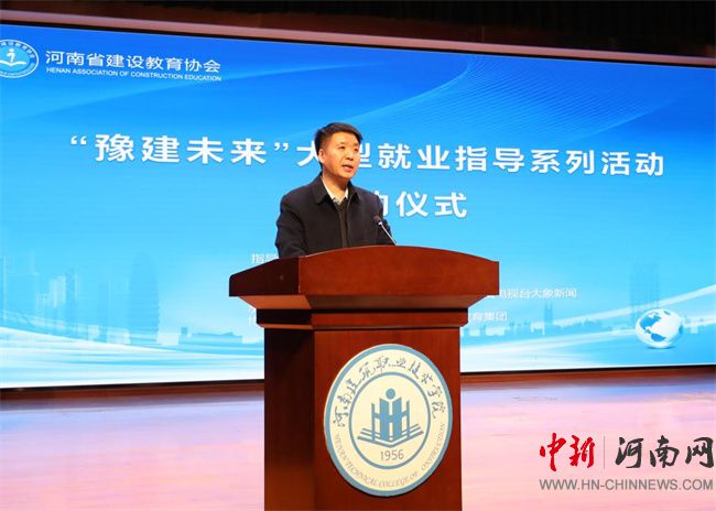 在啟動(dòng)儀式上,省教育廳學(xué)生處四級(jí)調(diào)研員錢鵬俊作講話。他指出,此次活動(dòng)是貫徹落實(shí)省委、省政府關(guān)于就業(yè)、創(chuàng)業(yè)決策部署的具體行動(dòng),是推動(dòng)建筑行業(yè)人才培養(yǎng)的關(guān)鍵舉措。他強(qiáng)調(diào),就業(yè)是民生之本,河南建院作為全省唯一一所公辦建筑類高等職業(yè)學(xué)校,堅(jiān)持以“雙高”工程建設(shè)為抓手,持續(xù)深化“三教”改革,緊密結(jié)合市場(chǎng)需求,拓寬就業(yè)渠道,優(yōu)化專業(yè)設(shè)置,加強(qiáng)實(shí)踐教學(xué),進(jìn)一步提高大學(xué)生綜合素質(zhì)和技能。希望學(xué)校以辦好人民滿意的教育為目標(biāo),始終把就業(yè)工作當(dāng)作學(xué)校生存與發(fā)展的生命線,在幫助學(xué)生樹立正確的職業(yè)規(guī)劃意識(shí),明確專業(yè)學(xué)習(xí)方向,掌握實(shí)用就業(yè)技能,培養(yǎng)學(xué)生綜合素質(zhì)和創(chuàng)造能力的同時(shí),積極搭建技術(shù)協(xié)同創(chuàng)新平臺(tái),努力為畢業(yè)生求職就業(yè)保駕護(hù)航。鼓勵(lì)同學(xué)們?cè)趶?qiáng)國(guó)建設(shè)的征程中磨礪成長(zhǎng),展現(xiàn)青年學(xué)子的風(fēng)采與擔(dān)當(dāng)。
