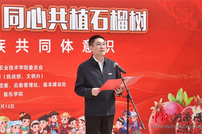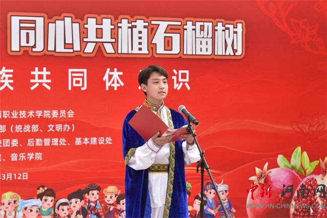 中新河南網(wǎng)3月13日電(隋納新) 3月12日是全國(guó)第47個(gè)植樹(shù)節(jié),當(dāng)天,河南職業(yè)技術(shù)學(xué)院舉行了“中華民族一家親,同心共植石榴樹(shù)”活動(dòng)。校黨委書(shū)記厲勵(lì)出席活動(dòng),為學(xué)生講授鑄牢中華民族共同體意識(shí)思政課,并為“民族團(tuán)結(jié)石榴林”揭牌。校黨委委員、副校長(zhǎng)任楓軒,黨政辦公室、黨委宣傳部、黨委學(xué)生工作部、校團(tuán)委、后勤管理處、基本建設(shè)處和各二級(jí)學(xué)院相關(guān)負(fù)責(zé)人,以及120余名各民族師生代表參加活動(dòng)。校黨委副書(shū)記、工會(huì)主席田華主持活動(dòng)。