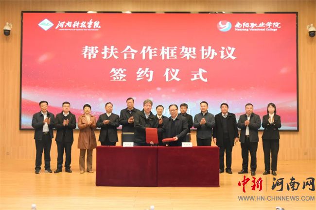 中新河南網(wǎng)3月17日電 3月15日上午,南陽職業(yè)學(xué)院圖書館西報(bào)告廳內(nèi)氣氛熱烈,河南科技學(xué)院與南陽職業(yè)學(xué)院對(duì)口幫扶合作框架協(xié)議簽約暨南水北調(diào)中線工程水源地鄉(xiāng)村振興學(xué)院、協(xié)同創(chuàng)新中心揭牌儀式在此隆重舉行。河南科技學(xué)院校長闞云超、副校長樂玉忠及相關(guān)單位負(fù)責(zé)人,西峽縣人民政府副縣長崔淅州,南陽職業(yè)學(xué)院全體在校領(lǐng)導(dǎo)出席儀式。此次儀式由南陽職業(yè)學(xué)院黨委副書記、工會(huì)主席郭書賢主持,該校全體中層干部共同見證這一重要時(shí)刻。