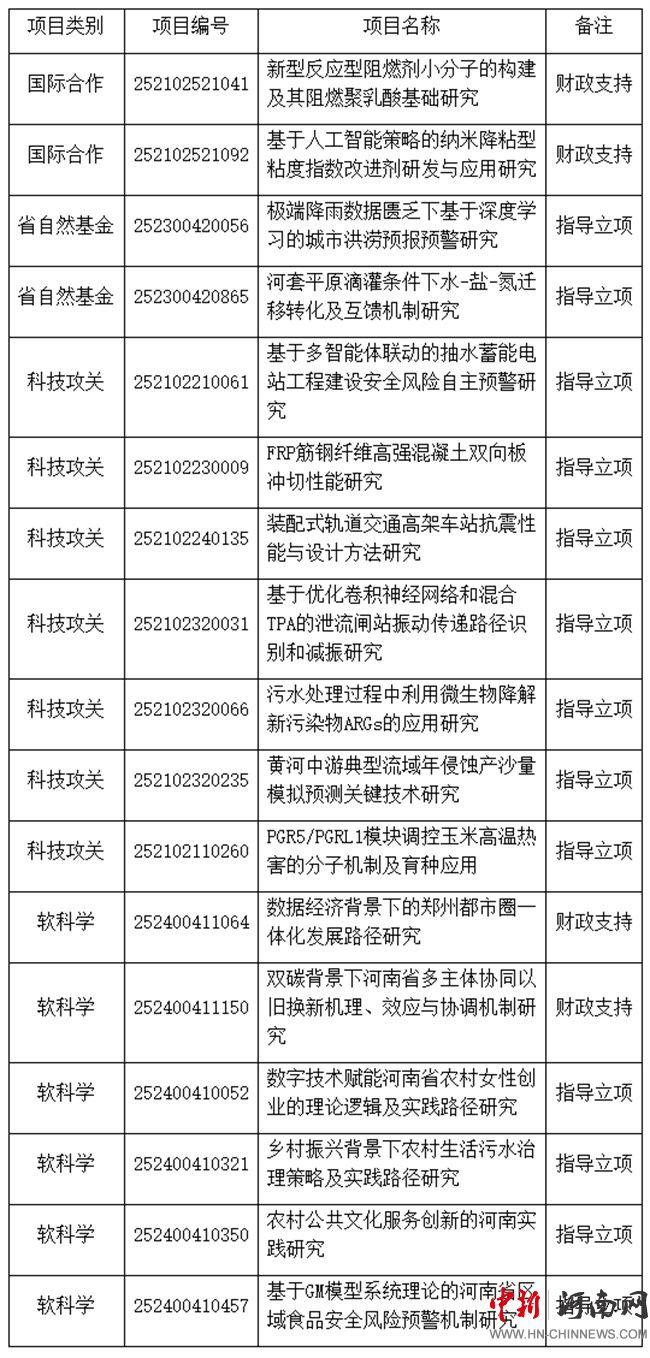 2025年河南省科技發(fā)展計劃項目立項一覽表