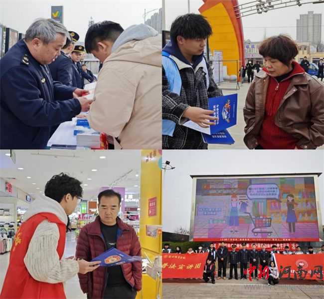 在“3.15”消費者權益日前后,學校普法宣講團走出校門開展了校外普法宣傳活動。宣講團成員走進品卓律師事務所學習交流,并跟隨律師前往周邊商場展開普法宣傳;協(xié)助龍湖市場監(jiān)督管理所、新鄭市煙草專賣局在萬佳商業(yè)廣場通過發(fā)放宣傳手冊及現(xiàn)場講解互動等方式,向來往群眾宣傳消費維權法律知識,有效增強了廣大群眾的消費維權意識。