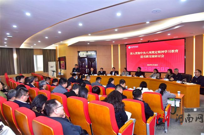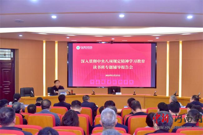 中新河南網(wǎng)3月30日電(隋納新) 按照校黨委關(guān)于開展深入貫徹中央八項(xiàng)規(guī)定精神學(xué)習(xí)教育工作安排,3月27日至28日,河南職業(yè)技術(shù)學(xué)院采取集中學(xué)習(xí)、個(gè)人自學(xué)和交流研討相結(jié)合的形式,舉辦為期兩天的深入貫徹中央八項(xiàng)規(guī)定精神學(xué)習(xí)教育讀書班。校黨委書記厲勵(lì)作開班講話。校黨委副書記、校長(zhǎng)夏新顏主持開班儀式。全體校領(lǐng)導(dǎo)及各單位黨政負(fù)責(zé)同志參加讀書班。