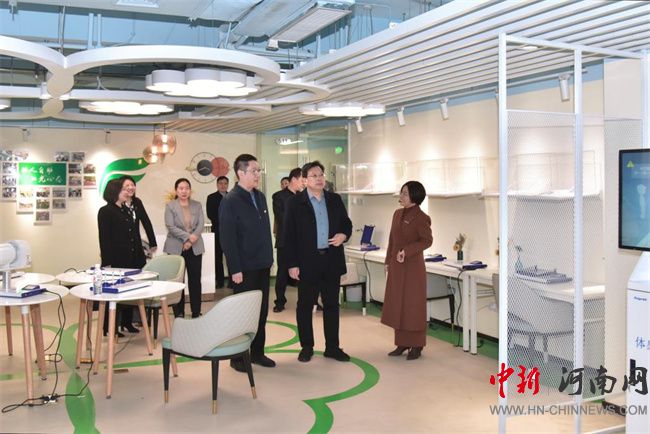 儀式結束后,在校領導的陪同下,王利國一行參觀了河職創(chuàng)新港大學生心理健康教育中心和校史館。