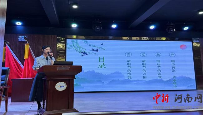 李合月老師以《慎終追遠(yuǎn)話清明》為題,從清明節(jié)的歷史流變、傳統(tǒng)習(xí)俗、特色飲食、緬懷英烈四個方面展開講解。她以生動的語言和豐富的史料,帶領(lǐng)師生們追溯清明節(jié)的起源與發(fā)展,解讀掃墓祭祖、踏青插柳、蹴鞠秋千等習(xí)俗的背后故事及文化內(nèi)涵。