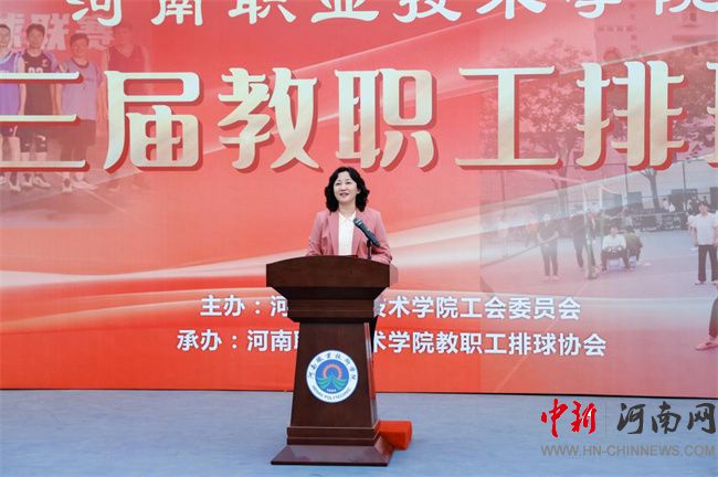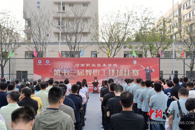 中新河南網(wǎng)4月14日電(王俊嶺) 4月10日下午,河南職業(yè)技術(shù)學(xué)院第十三屆教職工排球比賽在排球場(chǎng)開幕。校領(lǐng)導(dǎo)夏新顏、田華、盛興文、朱永寬出席開幕式。學(xué)校各分工會(huì)負(fù)責(zé)人及400余名參賽選手參加開幕式。開幕式由校黨委副書記、工會(huì)主席田華主持。