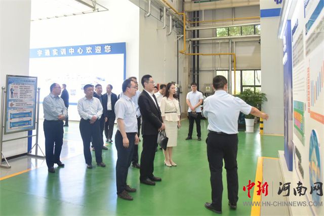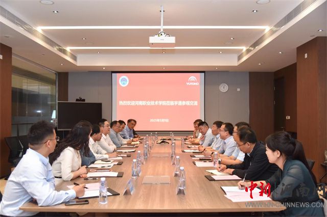 中新河南網(wǎng)5月10日電(張虹艷) 為深入貫徹落實國家“穩(wěn)就業(yè)、促就業(yè)”決策部署,進一步深化校企合作與產(chǎn)教融合,5月9日上午,河南職業(yè)技術(shù)學(xué)院黨委書記厲勵帶隊赴鄭州宇通集團有限公司開展訪企拓崗活動,與企業(yè)相關(guān)負(fù)責(zé)人深入交流,并看望企業(yè)優(yōu)秀校友代表。校黨委委員、副校長魯冬,黨政辦公室、黨委宣傳部、招生就業(yè)處、汽車與交通學(xué)院、馬克思主義學(xué)院等相關(guān)單位負(fù)責(zé)人一同參加。