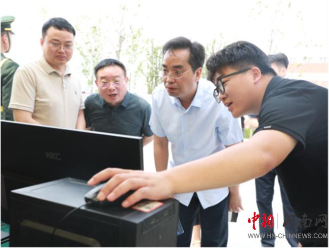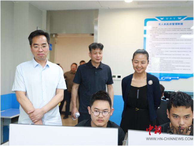 校長李曉東、副校長耿聰慧一行參觀了計算機組裝與維修、無人機航拍與建模等專業(yè)的展示