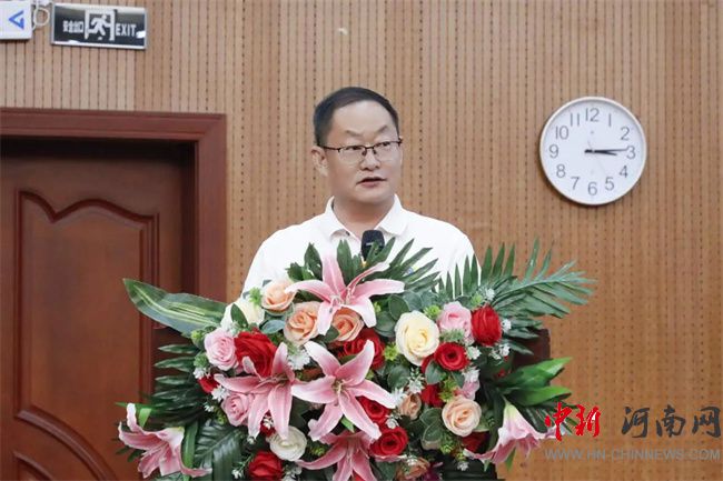 儀式上,中原華信控股集團(tuán)總裁谷建光致辭。他希望通過此次合作,雙語高中能夠把握時代機(jī)遇,向省實驗中學(xué)深度學(xué)習(xí),開啟 “資源融通、師生共進(jìn)、管理協(xié)同” 深度合作,讓新鄭學(xué)子享受名校教育。同時,谷總向?qū)W校領(lǐng)導(dǎo)班子提出了打造高素質(zhì)教師隊伍、構(gòu)建拔尖創(chuàng)新人才培養(yǎng)體系、創(chuàng)新學(xué)校治理模式三點要求。最后他呼吁雙方以簽約為新起點,攜手為教育事業(yè)貢獻(xiàn)力量。