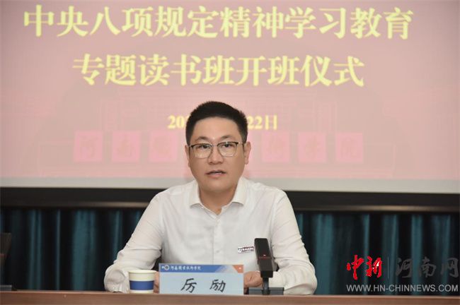 中新河南網(wǎng)5月25日電(郭曉娜) 5月22日至23日,河南職業(yè)技術(shù)學(xué)院舉辦年輕干部深入貫徹中央八項規(guī)定精神學(xué)習(xí)教育讀書班,推動年輕干部在深學(xué)細(xì)悟中提高理論素養(yǎng),在鍛造優(yōu)良作風(fēng)中凝聚干事創(chuàng)業(yè)力量。校黨委書記厲勵作開班動員講話。校黨委副書記、工會主席田華主持開班儀式和結(jié)業(yè)儀式,校黨委委員、紀(jì)委書記盛興文作廉潔教育專題報告。