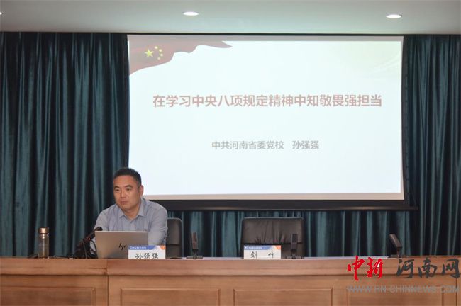 讀書班還邀請中共河南省委黨校、黨的建設(shè)教研部孫強(qiáng)強(qiáng)博士作題為《在學(xué)習(xí)中央八項規(guī)定精神中知敬畏強(qiáng)擔(dān)當(dāng)》的輔導(dǎo)報告。