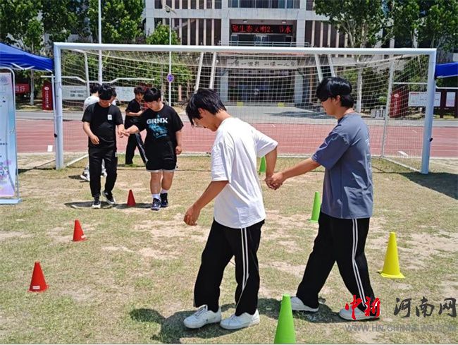 活動(dòng)當(dāng)天,從中午12:00至下午16:00,在校園田徑場上設(shè)置的游戲區(qū)域迎來了超過1000人次的熱情參與。同學(xué)們在參與各個(gè)趣味游戲中盡情享受團(tuán)隊(duì)協(xié)作的樂趣,在互動(dòng)中深化了對自我和他人的理解。“你是我的眼”活動(dòng)鼓勵(lì)同學(xué)們蒙上眼睛,完全依賴同伴的引導(dǎo)穿越障礙,體驗(yàn)到了人與人之間的真誠與信賴;“跳長繩”、“心有千千結(jié)” 、“南水北調(diào)”、“珠行千里”、“不倒森林”等合作游戲鼓勵(lì)同學(xué)們與團(tuán)隊(duì)一同尋找解決問題的策略,鍛煉協(xié)作能力;而“投壺”、“袋鼠跳”活動(dòng),也讓同學(xué)們在競爭中獲得自信。每一個(gè)活動(dòng)都成為心靈探索的入口,同學(xué)們沉浸式體驗(yàn)表達(dá)自我、探索自我,釋放情感的同時(shí)也感受到了來自同伴的支持與溫暖。