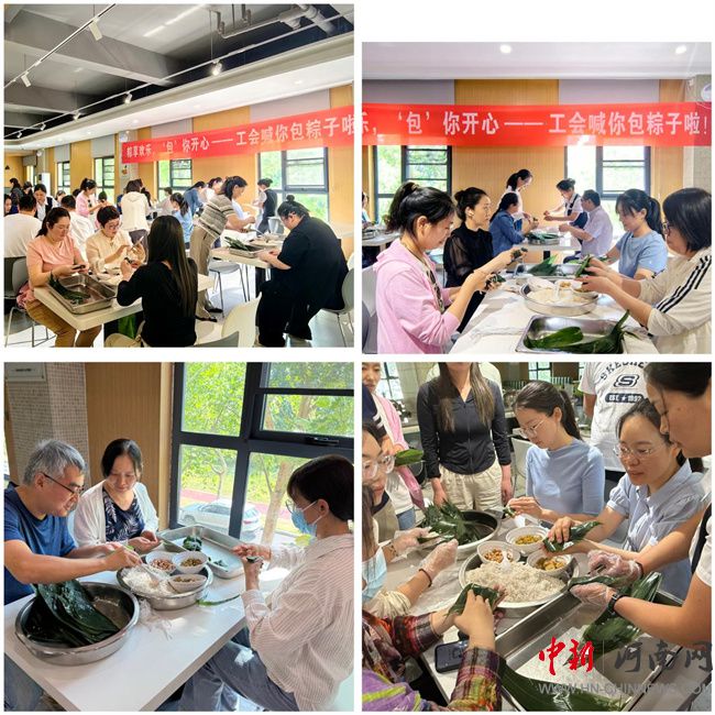 校工會(huì)開展“粽享歡樂 包你開心”端午節(jié)包粽子活動(dòng)。餐廳內(nèi)早早準(zhǔn)備好了糯米、花生、葡萄干、蜜棗、粽葉、棉線等包粽子的材料;顒(dòng)伊始,經(jīng)驗(yàn)豐富的教職工主動(dòng)為大家示范包粽子的技巧。大家圍坐在一起,一邊包粽子,一邊交流工作與生活中的趣事,氣氛溫馨融洽。整個(gè)食堂彌漫著粽葉的清香與糯米的香甜。經(jīng)過近兩個(gè)小時(shí)的努力,桌上堆滿了形態(tài)各異卻飽含心意的粽子;顒(dòng)不僅讓教職工們體驗(yàn)了傳統(tǒng)民俗文化的樂趣,增進(jìn)了彼此之間的感情,更展現(xiàn)了工會(huì)對(duì)教職工的關(guān)懷。