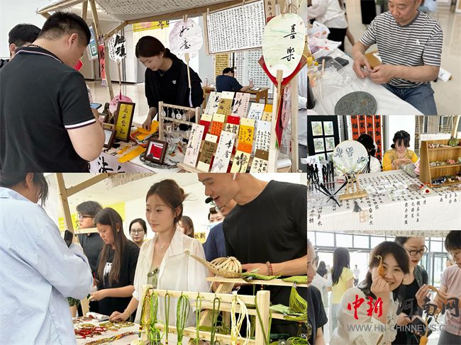 活動(dòng)現(xiàn)場(chǎng)設(shè)置端午限定工坊和非遺文化體驗(yàn)兩大區(qū)域。工坊區(qū)內(nèi),師生們親手制作祈福手繩、艾草門(mén)掛等端午特色手工藝品;非遺體驗(yàn)區(qū)則展示了天壇硯拓印、漆扇制作等傳統(tǒng)技藝,葫蘆烙畫(huà)、李氏布藝等非遺項(xiàng)目更是引來(lái)陣陣贊嘆。