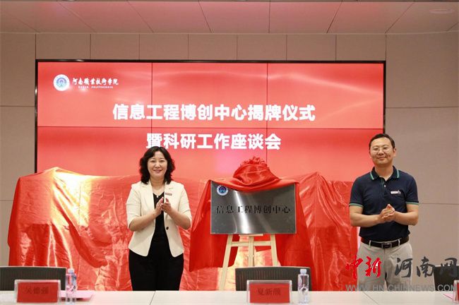 中新河南網(wǎng)6月4日電(孫玉敏 董俊磊) 5月30日是第九個全國科技工作者日。河南職業(yè)技術(shù)學(xué)院在河職創(chuàng)新港大數(shù)據(jù)雙創(chuàng)基地舉行信息工程博創(chuàng)中心揭牌儀式暨科技工作者座談會。校黨委副書記、校長夏新顏,校黨委委員、副校長朱永寬出席活動。黨委教師工作部、科技開發(fā)處負(fù)責(zé)同志,現(xiàn)代信息技術(shù)學(xué)院相關(guān)負(fù)責(zé)同志、博士和師生代表參加活動。