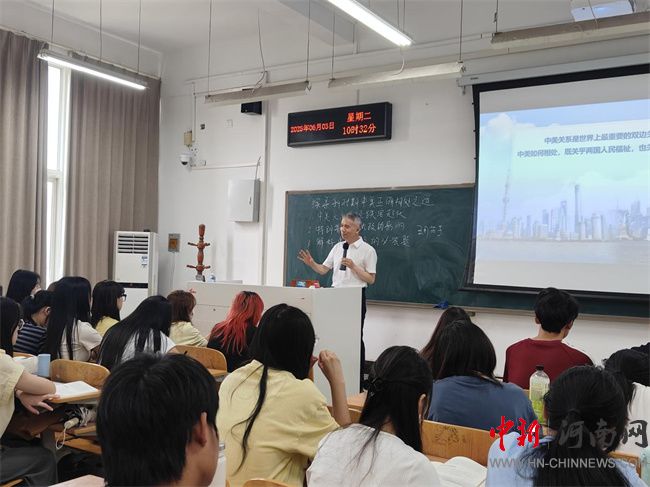 課堂上,盛興文以“探尋新時(shí)期中美正確相處之道”為題,圍繞“中美關(guān)系發(fā)展歷程、新時(shí)期中美如何正確相處”等問(wèn)題展開(kāi)深入闡釋。他深入剖析了中美關(guān)系在新時(shí)代的復(fù)雜性與重要性,指出,從經(jīng)濟(jì)層面來(lái)看,中美兩國(guó)作為世界兩大重要經(jīng)濟(jì)體,貿(mào)易往來(lái)和產(chǎn)業(yè)合作緊密交織,雙方的決策對(duì)全球經(jīng)濟(jì)發(fā)展有著深遠(yuǎn)影響。在科技領(lǐng)域,兩國(guó)在前沿技術(shù)的競(jìng)爭(zhēng)與合作并存,既推動(dòng)了人類(lèi)科技進(jìn)步,也帶來(lái)了諸多挑戰(zhàn)與博弈。